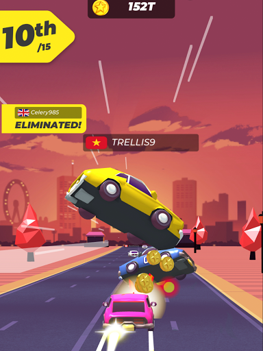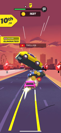 Take your driving skills to the extreme and cause a havoc by crushing all the cars on the road as you make your way to the finish line! With the ultimate goal of acquiring coins and unlocking powerful vehicles, shove the opposing vehicles off the road without any regards for the consequences. Merge the cars in your garage to unlock even more powerful ones and prove to the world that you are the ultimate daredevil driver.