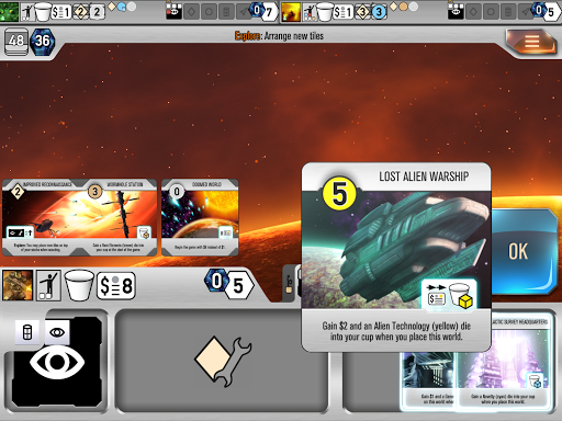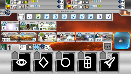 Roll for the Galaxy: dice game of building space empires. Manage workers to develop tech, settle worlds & ship goods. Async/real-time multiplayer, advanced AI.