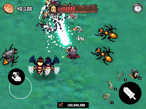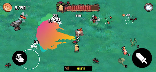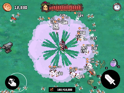 Stronger pests appear over time. Buy items to improve your character. Attack speed, damage, weapons, helpers, health, buffs, etc. You can purchase items with the desired effect.