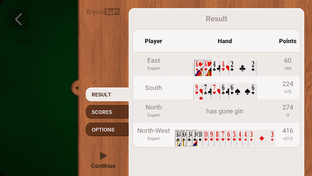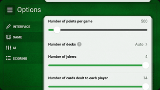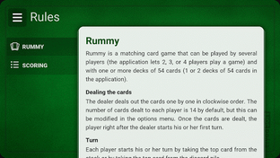 Play rummy with 2, 3, or 4 players against simulated opponents playing with high-level artificial intelligence.