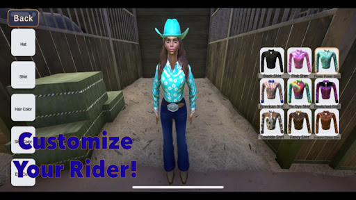 Customize your rider avatar to match your horse! Style your rider with different shirts and hats to match your saddle blankets and protective gear on your horse. Choose which saddle and bridle looks best on your horse. There are endless options to choose from in the Saddle Up Shop with new sets always being added!
