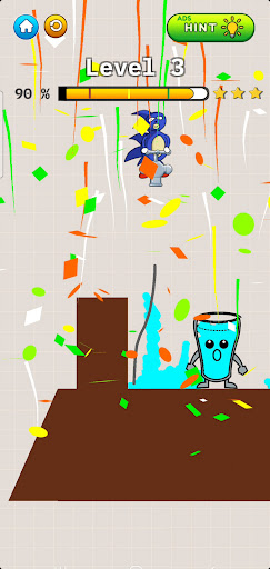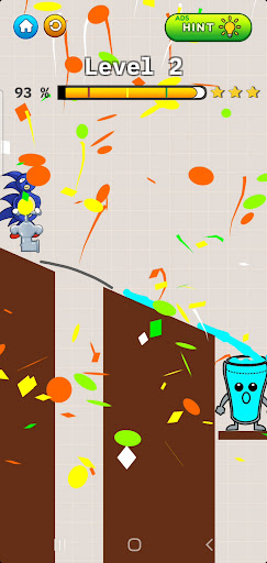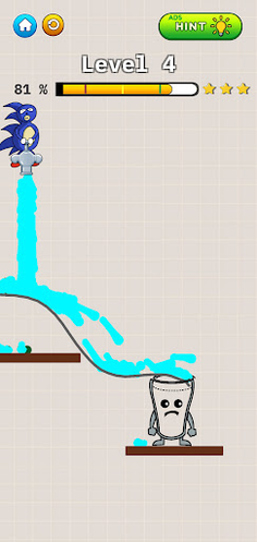 Your job is to draw a line to make the glass filled up with liquid and smile again!
