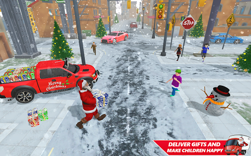 The Christmas has made people very excited. Snowfall in vacations brought a fizzy chill among people of city. Watch for snow skaters playing and racing in the city. Play this real winter Christmas car game, get coins and buy some new cars. Become a Santa Claus and deliver presents to all houses. Accelerate slowly and do not hit any other traffic in this Santa delivery gift adventure game. Be careful with children playing along the roadway in this car driver game. Kids are super-duper excited to open Xmas gift box and celebrate virtual family fun. Jingle in all the way is waiting for you. In this Santa Christmas Gift Delivery: Gift Game, Santa Claus is on rush gift delivery driving duty to travel around grand city and make the children happy.
