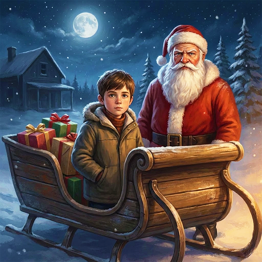 Being disappointed, Calvin returns back to his home. He was shocked to see that his house was fully dark without any light. He hurries inside to check all the rooms and finds that all the materials are gone, adding to the fact that his father is also missing. After hearing some noise, he runs to the spot and finds a long pair of boots that belong to Santa Claus. He searches the house for Santa and ends up finding Santa’s cart. When he touches the cart, his journey begins.