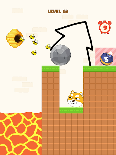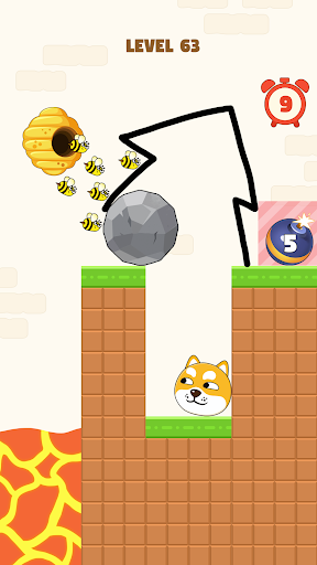 To embark on the journey of rescuing your furry friend, start by swiping the screen to form a wall around the dog, providing it with a challenging fortress. While you continue to draw the lines to strengthen the wall, do not let go until a satisfactory pattern is achieved. Once achieved, wait patiently for the unrelenting bee attacks. Your task is to hold your wall for 10 seconds and ensure that no bees can harm the dog. By fulfilling this objective, you successfully save the dog and triumphantly win the game.
