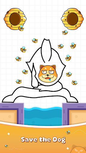 - Use your creativity to draw any lines or shapes you want to save the dog from bees. You can even draw a house, a person, etc. There's no limit