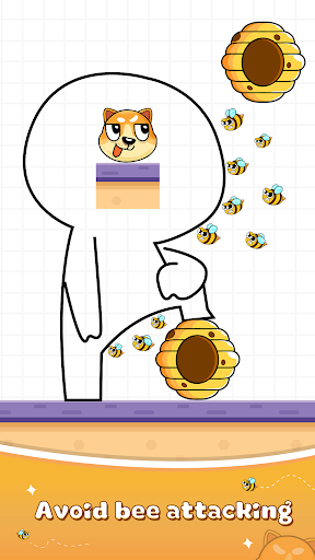 - Use your finger to draw lines to protect the doge from bees. After you finish your drawing, the bees will attack the dog for 5 seconds. If the dog stay safe within this time, you'll pass your level