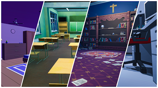 A huge map with 4 locations to explore i.e. an old haunted house, an abandoned office, a horrifying school and a desolated school