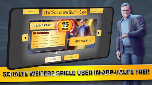 The app comes with 5 mini-games, including Kopfrechnen, Lattlschießen, BallBall, Länderkunde and the classic "Blamieren oder Kassieren". You can either play the Best of Three or the free game modes. Other games can be purchased individually or in value packs. Log 7 games to play the "Halbe Show" mode and unlock the complete show, which includes 15 games.