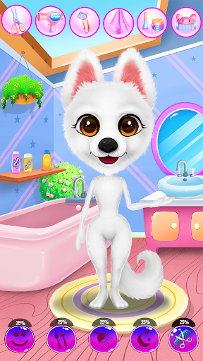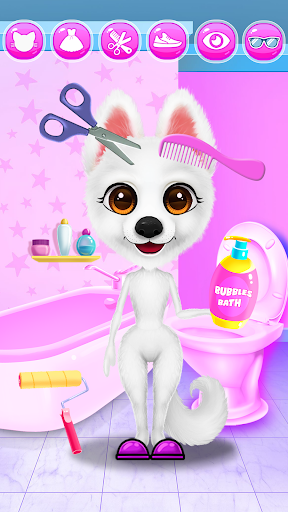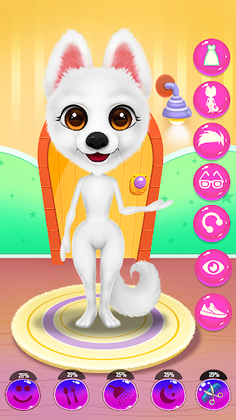 You will find that he is a puppy coming from the White Swiss Shepherd breed. Your main job will be to fulfill his needs and mostly to have fun with this white fluffy puppy. His hygiene is so important, that's why you will begin with a total makeover. Give Simba a bath and help him with his teeth cleaning. Once his fur is all washed you will use the toothbrush and toothpaste to remove the leftovers stuck in his fangs. After the urgent matters are solved you can take him to the fashion designer where his new look will be chosen. Add your print in his aspect and combine pretty outfits. Use the accessories to complete his look and don't forget to make him appear like a fancy styled puppy he is. His hairstyle must be changed as well, so get him to the hair salon for dogs. Here you will change his hair with something that will match his new style. Be bold and pick a cute haircut for your puppy. Next comes his workout routine. Take your little puppy to the gym where you will make some exercise to keep him in good shape. Learn new tricks and help him execute them right. It is time for Simba to eat something delicious after all this work. Prepare a yummy and healthy meal for your dog and make sure he is ready for another adventure. Play with his superpowers and let him fly as high he can.