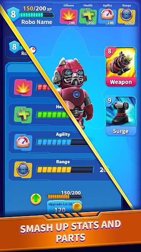 Collect unique skins to stand out and show off. Battle in a variety of mysterious locations within the Smashbots Universe!