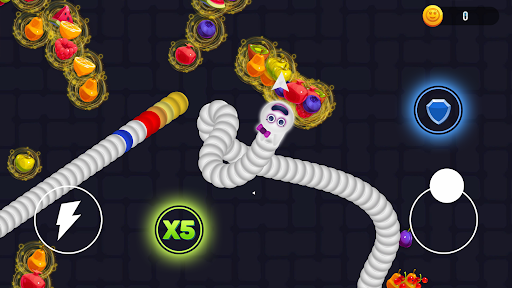 Like many other snake.io family games, Snake Giant retains the classic core gameplay mechanism! Slither through many snake and worm enemies and try to eat as many fruits and boosters as possible to make your snake bigger. Watch out other players and try not to bump into them, otherwise you’ll have to start from scratch. The bigger you grow, the stronger you are. You, the biggest worm of them all, can easily defeat all the enemies slithering to you on the way. Let’s see how long you can survive through this infinite and challenging survival~
