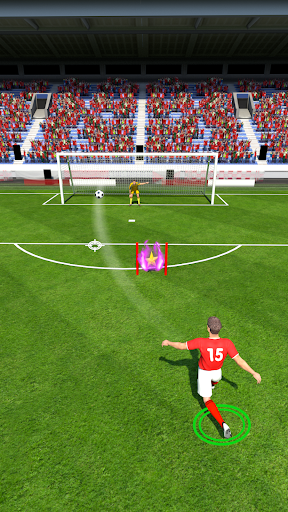 -> Make your way towards the goal and strike past the goalkeeper to complete the level.