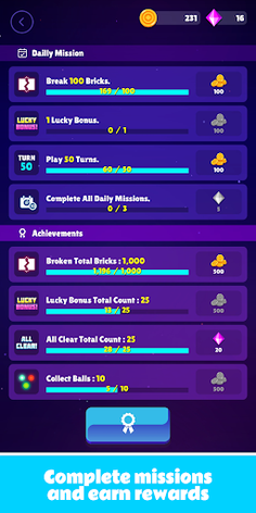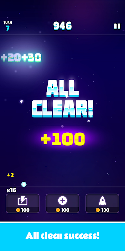 - All Clear: This can be achieved by destroying all blocks on the screen and obtaining all balls.