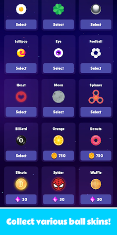 - Collect and play balls of various shapes with the coins and gems you get while playing the game.