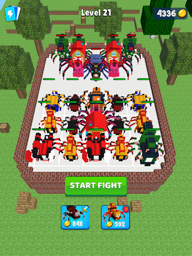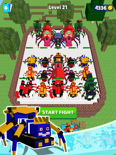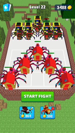 Spider Train: Craft Merge is a cool and addictive real-time strategy game for everyone who wants to have fun with spider train and train monsters in the train battle. The main goal is to defeat all the spider enemies by combining your spider craft picks to evolve from simple to more powerful. Combine quickly and aggressively attack enemies to gain control of enemy positions and possess greater power than opponents. At the same time, use your strategy and tactics to win the battle and move on to the next level.