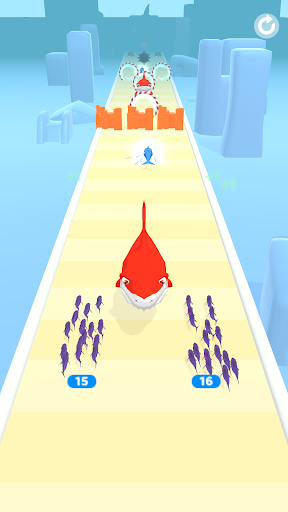 Collect and evolve as much fish as you can. Reach the end of level and fight giant shark!