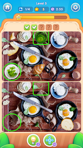 There is not much time for spotting the differences, so try to be as quick as possible! Remember that with every wrong answer you lose seconds, so focus. To make it on time you can use bonuses and boosters which makes it even more fun to play.
