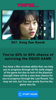Then there is a small game You can play to find out if you can Survive the Challenge of SQUID GAME and which character from SQUID GAME has the most similarities.