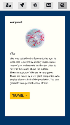 Will you become a space faring merchant or do you want to stay at your homeplanet and lead it into glory? Will you become rich through clever investments or are you going to work an ordinary job? Are you going to become a social media star or a famous bounty hunter ?