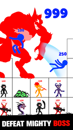 Get ready to embark on a thrilling journey of battles and challenges that will put your skills to the test. The game is set in numerous zones where menacing monsters have taken over, but fear not, your intelligence will be needed to help the hero take them down and unlock each zone. You'll come across numerous moons of castles and have a plethora of weapons and tactics at your disposal to take on each level. Carefully plan out your moves and strategize accordingly as you progress through the game and upgrade your hero's strength through weaponry and experience. Stick Fight: Endless Battle is a genre-defining game that offers a blend of puzzle, action, strategy, and tactics to keep you enthralled. The game developers have gone above and beyond in creating an unforgettable experience for players worldwide. Download the game for free and enter a world of epic adventure. The game features an array of gameplay options, including strategy role-playing and loot-collecting mechanics. Develop powerful heroes by leveling them up, upgrading their skills, linking them to others, and making them legends. The game has an unlimited number of levels to challenge you, each set in stunning locations with breathtaking graphics. You can also take on daily quests, challenging quests, and much more in this game. Stick Fight: Endless Battle is an excellent game for anyone who loves a good battle and enjoys a well-blended mix of strategy and action.