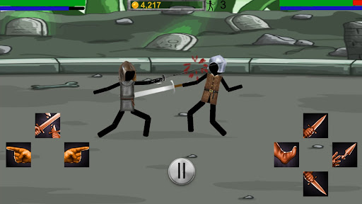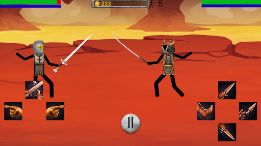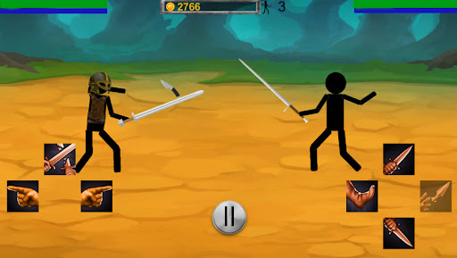 In the stickman sword duel you can use various swords, throwing weapons and armor to beat opponents in the stick fight. Stickman sword duel is one of the fighting games where you can apply different battle tactics with heavy or light weapons and armor. This stickman sword fight game allows you to combine lower and upper attacks with kicks and throwing weapons, but you need to calculate attacks carefully. Game features: