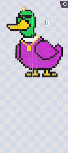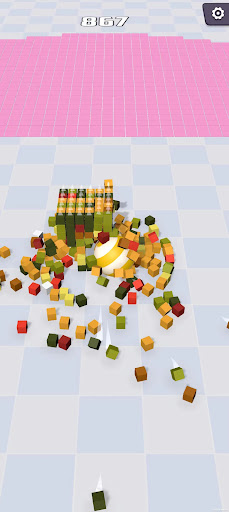 The goal is to complete a beautiful pixel art. Players can upgrade the speed and weight capacity of the ball to transport more pixel blocks each time.