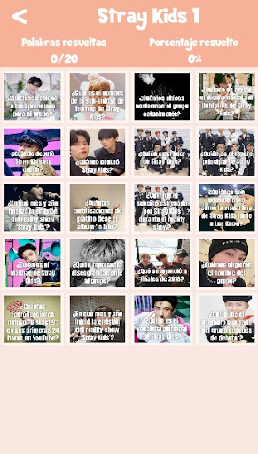 -El juego es sencillo pero muy divertido, consta de diferente niveles, y para pasar de un nivel a otro debes contestar todas las preguntas del nivel anterior. Pero no te preocupes por que puedes obtener ayudas si te atascas en alguna pregunta sobre Stray Kids
