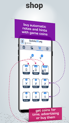 ► Get game coins by playing Sudoku 3D for a certain time or by watching ads.