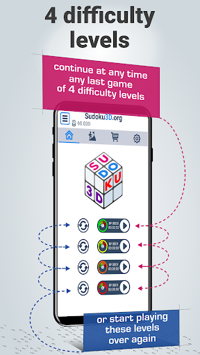 ► The complexity of Sudoku depends on the number of initially filled cells and on the methods that need to be applied to solve it. There are 4 difficulty levels in Sudoku3D. 1 difficulty level for beginners, 4 - for professionals.