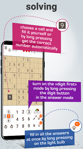 ► Select an empty cell and fill it manually with the correct digit or by long pressing in solution mode, get the correct digit automatically.