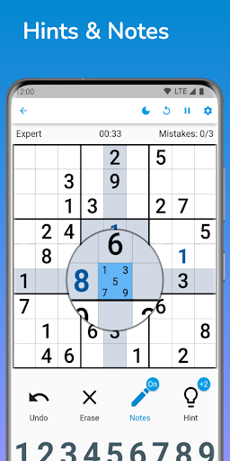 - Pencil and notes mode - Turn on pencil mode to add notes to a square to help you solve the Sudoku games!