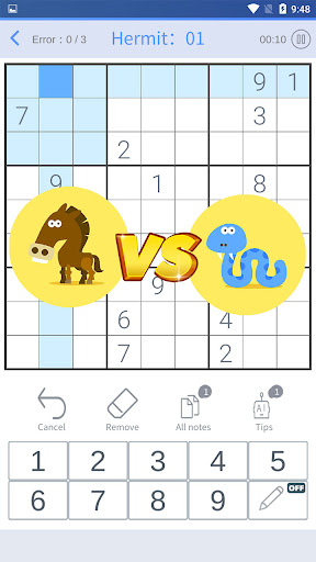 This brain games is made for all kinds of sudoku enthusiasts, whether you are an amateur or pro sudoku player, Sudoku puzzle:global rank is your best choice. The rule of this number games is very simple, just fill the correct number in appropriate cell of the sudoku. Rule is simple, but there are many skills you need to master in order to solve more difficult puzzles. All you need to do is just following the tutorial to know all the skills like Cell limit, cell exclusion, hidden single and etc. You don’t need to be panic, just follow the guide, there are tons of exercises for you in Sudoku puzzle:global rank.