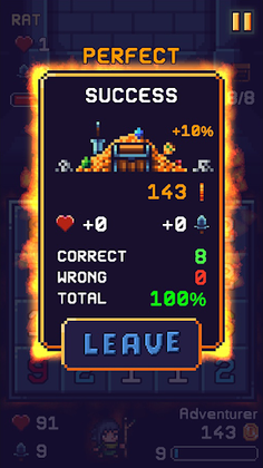 you play as various heroes in a world filled with uncool monsters. Your task is to fight these monster by using math. There are plenty of dungeons that needs to be cleared and the dungeons get harder and harder.
