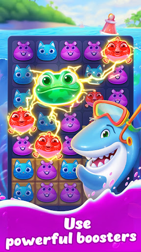 Dive into the ocean of exciting puzzle free levels, but remember that not all underwater inhabitants like noisy and cheerful 3 match companies, so get ready to meet a real shark on your way! This shark is challenging our friends - join their team and don't let the shark ruin the summer holidays in a wonderful 3 match free new.