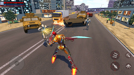 You control man hero in full 3D environment like AAA console game. The iron fighting action game is made on the absolutely new engine and takes place in the city of criminal gangs. Cruel crime lords attacked the city and your iron superhero should defeat the mafia! Civilians need your help, however police or army forces are unable to fight gangster mafia bosses. There is no chance and the city is going to ruin, but here you are as a true iron superhero fighter! People need you to fight away all thugs from the streets. So become a superhero to defeat bosses in the city in one of the best spider heroes fighting games!