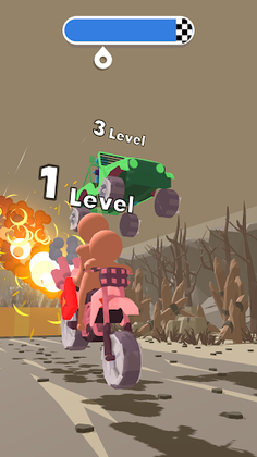 Shoot your enemies and leave them to dust, race against higher level bosses and even level up your vehicle to be the boss. Destroy or avoid obstacles in your path, make high jumps and show your driving skills.