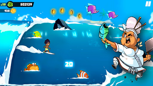 Only the finest surfers have the ability to brave the danger of the sea and catch the freshest fish for Grandma. As you achieve success in your quest of adventure, you will be rewarded with coins, new surfers gear, and boosters.