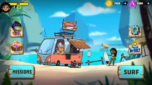 Embark on a glorious adventure of unlocking insane outfits and top-notch surfing gear for an even more exciting joyride in the heart of nature. Upgrade and improve your run using fish magnets or exciting boosters. Explore the wonders of the organic environments through its amazing graphics, and fill your desire for new things with this top new runner game.