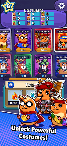 - Adorn Taco with various costumes, each offering unique abilities and styles, enhancing the gameplay experience!