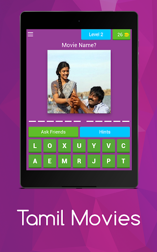 Tamil Movies is a free android game to find movie name by guessing the picture of movie. Interesting game for Tamil movie watchers, lovers and troll makers.