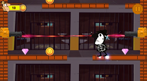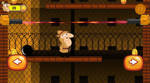 You have to avoid the laser beam and the prison dogs