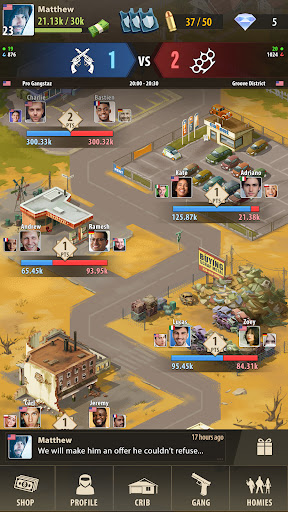 👥 Create or join powerful street gangs → Entice others to join: gather your allies and convince your enemies to double-cross their own gangs.