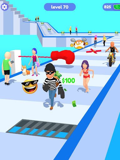 Dodge the obstacles in your path as you run as quickly as you can. Seize anything you come across on the trip, including traveller's clothing, purses, jewellery, and treasure. Make your way away from security and robbers.