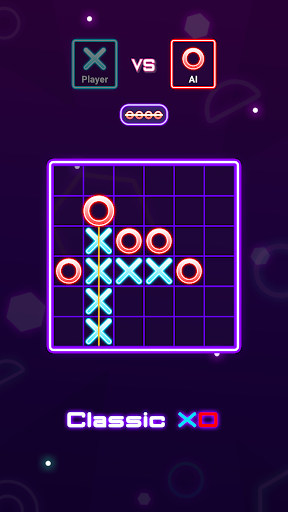 • Customize your Tic Tac Toe experience with dazzling designs in the glow of neon.