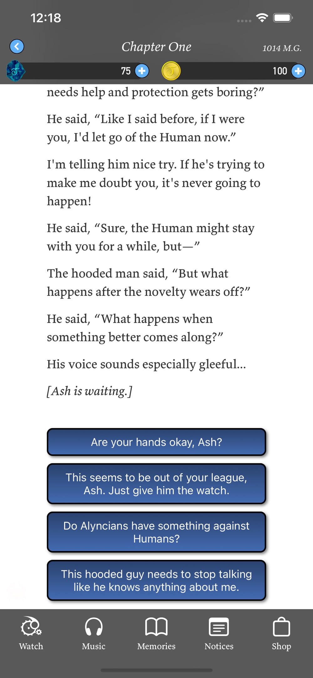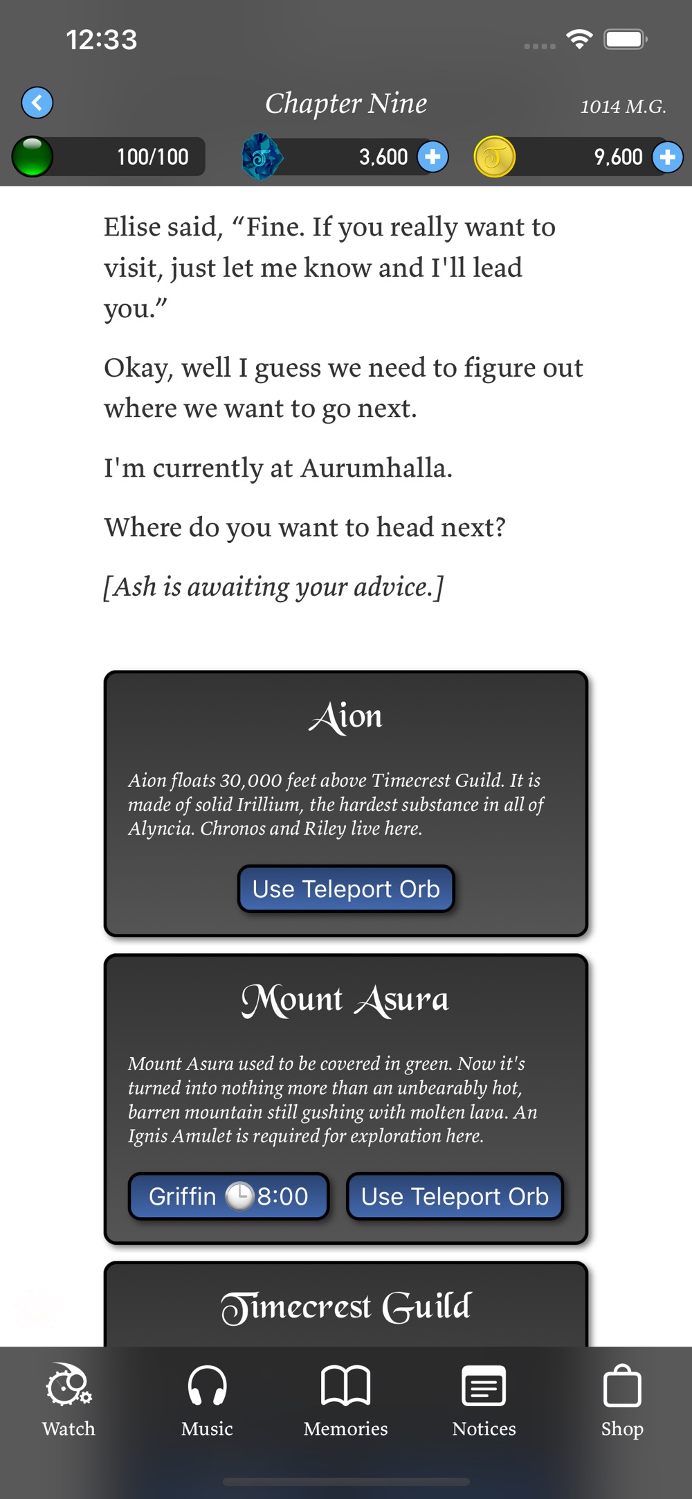 Ash will notify you of what is happening in Alyncia, and every choice you make influences the story. Timecrest is a game of multiple endings and real-time story progression.