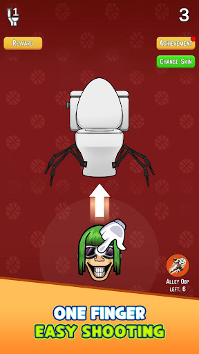 😎 Welcome to the world of Toilet Basketball - where you can unleash your basketball skills with toilet skibidy monsters. Shoot hoops, make mind-blowing alley oop, flip more for more points and break the record! Be careful not to fall and break your neck! Complete your monstrous journey through amazing portals and discover super cool toilet monsters!