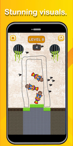 There are hundreds of ways to solve every puzzle, just by drawing free lines on your screen to save our skibidi friends!
