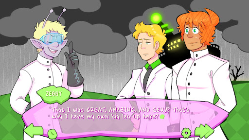 -Zeggy is a mad scientist stuck in his "lab" who suddenly gets a very intriguing (and sexy) visitor!