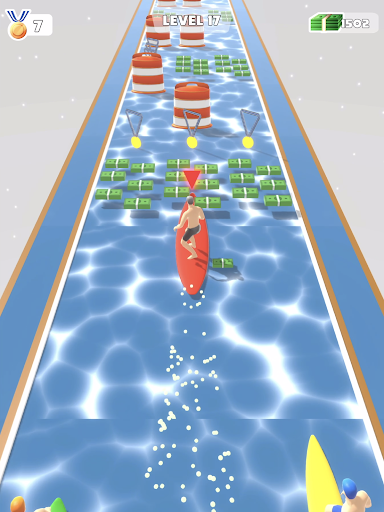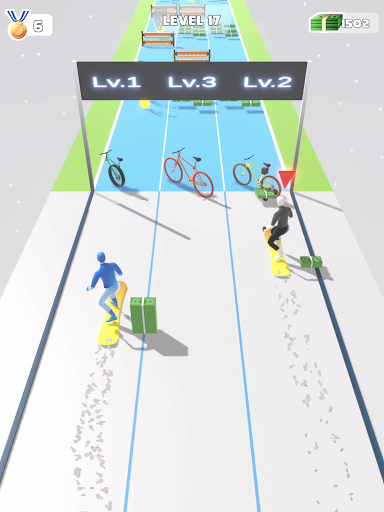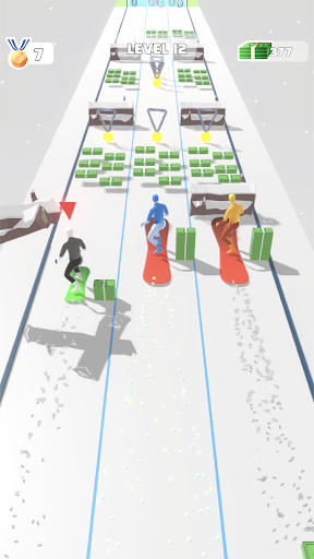 Race with your opponents, collect money to get the best equipment, aim and shoot to multiply your score!